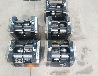 輥模,它是由一組高耐磨材料、精加工孔型的輥輪組成,輥輪數(shù)量上的選擇是根據(jù)材料、線徑、減面率的不同選擇不同的配置(從4個到10個不等),線通過輥模時是靠拉力和線與輥輪孔型之間的摩擦帶動輥輪轉(zhuǎn)動,線出來時被輥輪孔輥壓減徑.標(biāo)準(zhǔn)輥模出線的直徑公差+/-0.02mm,特殊型號的輥模出線直徑公差+/-0.01mm;輥輪的正常使用磨損壽命(使用到公差超出設(shè)計公差時)與加工材料類型、表面狀況和輥模維護(hù)管理有關(guān),嚴(yán)格意義上與加工線的長度成一定比例關(guān)系,但按生產(chǎn)管理習(xí)慣,同一用戶一般產(chǎn)量按重量單位做統(tǒng)計(同樣噸數(shù),線徑大噸數(shù)高但長度?。?。磨損后的輥輪還可修磨改制成其它規(guī)格的輥輪,類似拉絲模的修模。