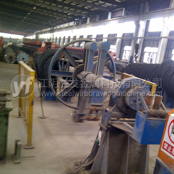 放線架是將原料無動(dòng)力(被動(dòng)放出),粗線(?8mm)以上通常采用“一”字式放線架,優(yōu)點(diǎn)在于放線不停車、操作高度較低比較安全。中線(≤6.5mm)推薦采用液壓式高架放線,優(yōu)點(diǎn)在于節(jié)約場(chǎng)地、放線不停車、高度達(dá)到9米以上時(shí)亂絲非常少;但是對(duì)于這個(gè)直徑的高碳鋼絲而言,鴨嘴式放線架雖然使用場(chǎng)地比較大,效果也可以的。細(xì)絲的放線一般用上抽式放線架,尤其對(duì)于退火后的細(xì)絲,就必須使用一些特殊的裝置才能確保亂絲少。工字輪放線是*好的方式,但是因?yàn)橛猛镜南拗?,這種方式不能全部使用。