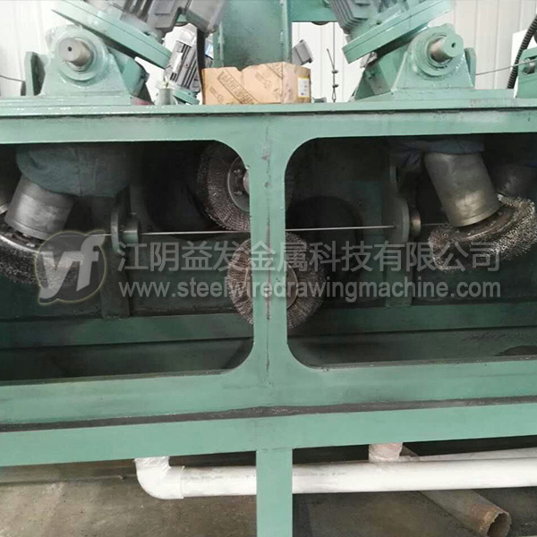 *嚴(yán)重的缺陷是鋼絲表面刷光后難以拉拔,鋼絲攜帶潤滑粉較少,模具消耗量急劇增加,所以通常與砂帶拋光機(jī)結(jié)合使用,這樣既能100%去除銹蝕層,又能在鋼絲表面形成螺紋狀的凹痕,這些凹痕填滿潤滑粉進(jìn)入模具,拉絲效果媲美涂硼或者磷化。