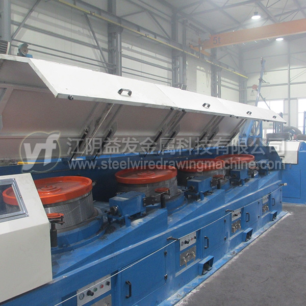 9、拉絲卷筒表面采用R與分級傾斜角設(shè)計,適度的R角確保用戶要求的鋼絲具有足夠的推力,使鋼絲拉拔后平滑無跳動上移,分級傾斜角確保鋼絲冷縮時整齊排列,持續(xù)與卷筒進行熱交換;卷筒的基體材料為45#,粗加工后熱處理,基體硬度48°,然后卷筒表面噴涂碳化鎢,硬度58°--- 62°,研磨后的卷筒表面光潔度≤0.02mm,光滑的表面確保不擦傷鋼絲,卷筒的水冷系統(tǒng)擁有國家專利(實用新型專利,專利號: ZL 2018 2 0667547.0):卷筒內(nèi)部采用自除垢系統(tǒng),冷卻水與卷筒內(nèi)壁保持5mm間隙,冷卻水環(huán)繞卷筒內(nèi)壁均勻進行熱交換,事實證明此結(jié)構(gòu)效率達80%以上,使用10年以上水路系統(tǒng)免修理,是高效低成本高質(zhì)量拉拔低碳鋼絲的*佳技術(shù)裝備,戶外循環(huán)冷卻水池用戶自作,推薦水池尺寸:長3米 × 寬2米 × 深2米