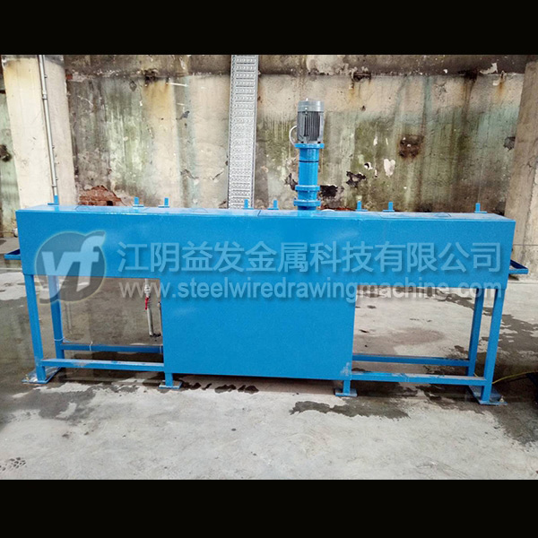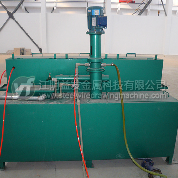 箱體采用Q235板焊接而成,內(nèi)膽采用314不銹鋼板焊接防止硼砂水受銹蝕的污染,保持硼砂的純潔度,保持鋼絲涂硼效果。兩層之間有40mm的保溫棉。不銹鋼電加熱管12KW,有熱電偶控制溫度,1.5KW的提升泵用于硼砂水上下循環(huán),相當(dāng)于自動(dòng)攪拌,箱體上層液體采用了多次溢流方式,出口處高壓氣吹用于調(diào)節(jié)鋼絲表面的硼砂量。長度2500MM,寬度500mm,高度1100mm,重量800Kg。