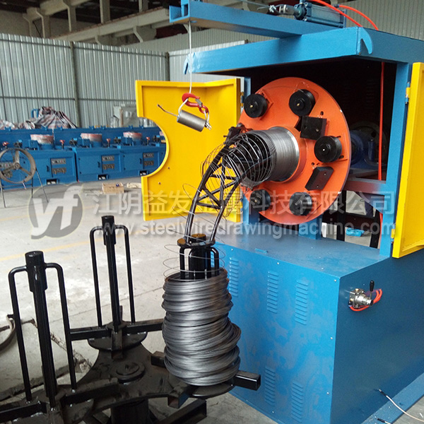 象鼻式收線冷卻方式分為自冷卻與水冷卻兩種,收線方式有普通與梅花型兩種。通常低碳鋼絲采用自冷卻普通型收線,速度≤30M/S,高碳鋼絲與彈簧鋼絲應(yīng)該采用梅花型水冷卻,收線速度≤12M/S
